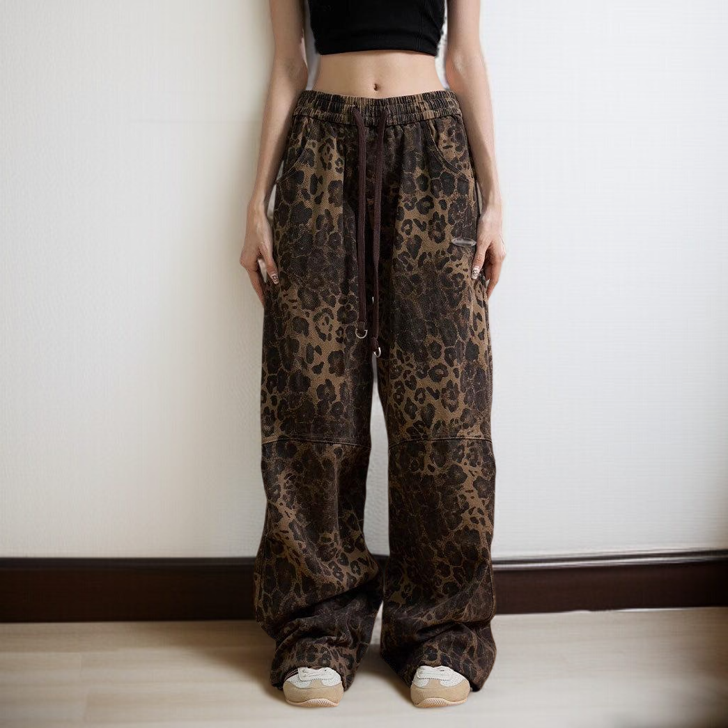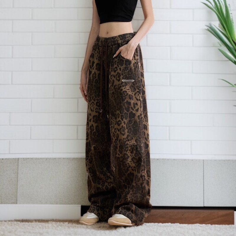 바지 여성 힙합 카고 팬츠 추동 일자 맨투맨 팬츠 캐주얼 팬츠 여자 호피 스트릿 댄스 아메리카 맨투맨